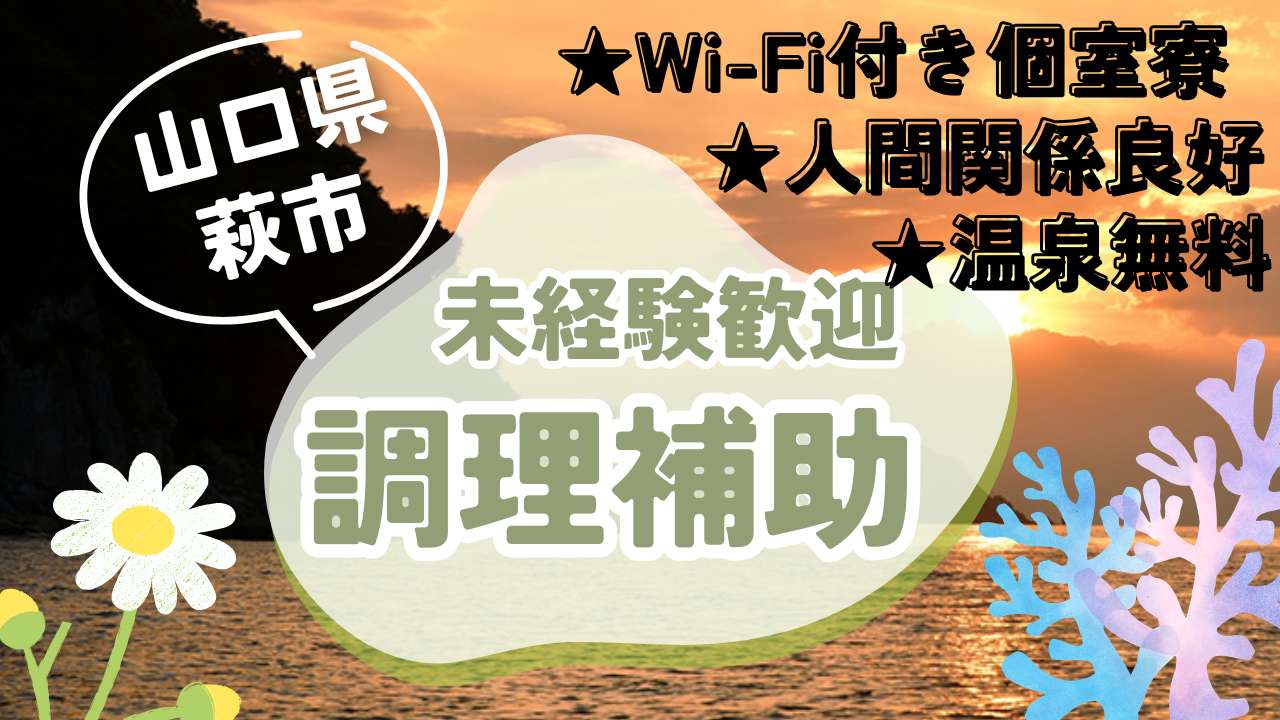 山口県での調理求人です!温泉入浴可!リゾートバイト初心者も大歓迎です!海の近くのゆったりとした旅館でリゾートバイトしませんか?