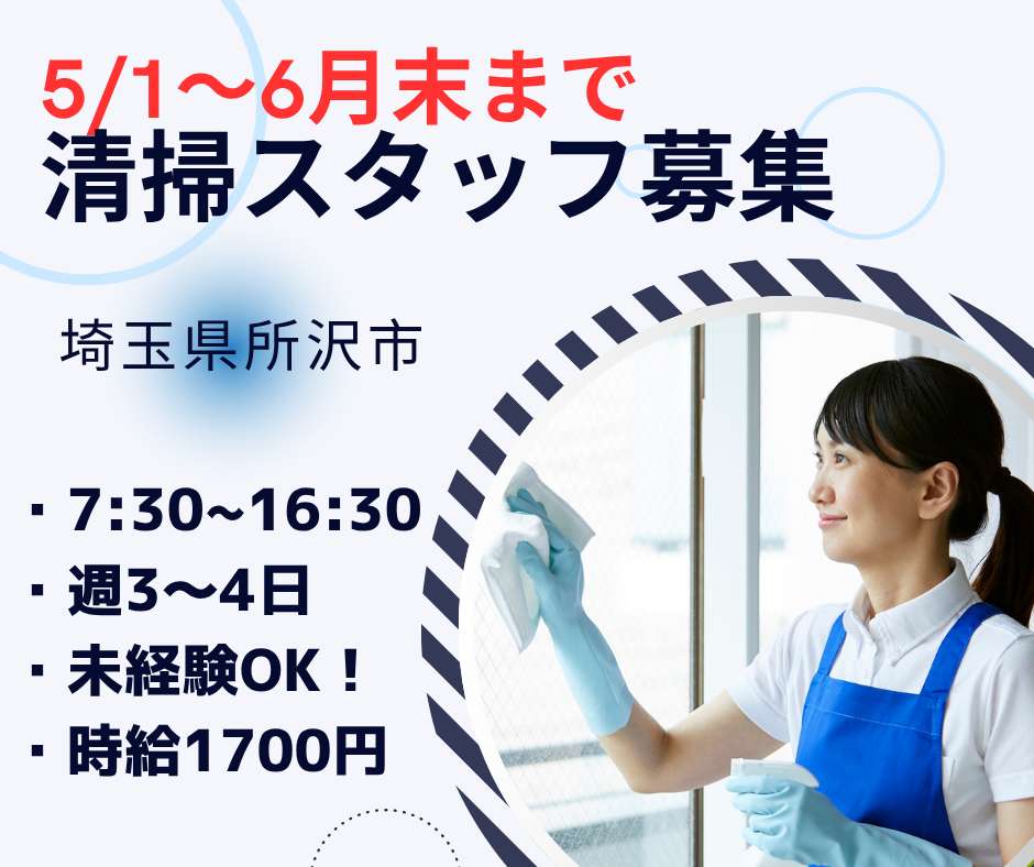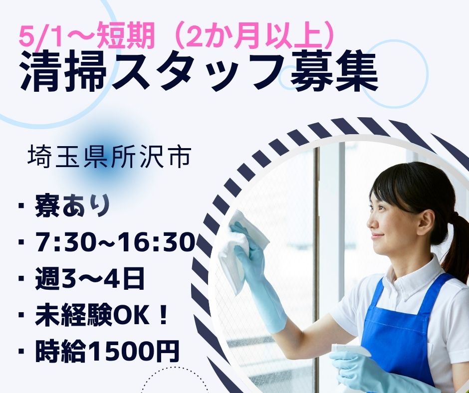 【5/1~2か月※延長OK】所沢にある物流センターで清掃スタッフを募集(未経験可)