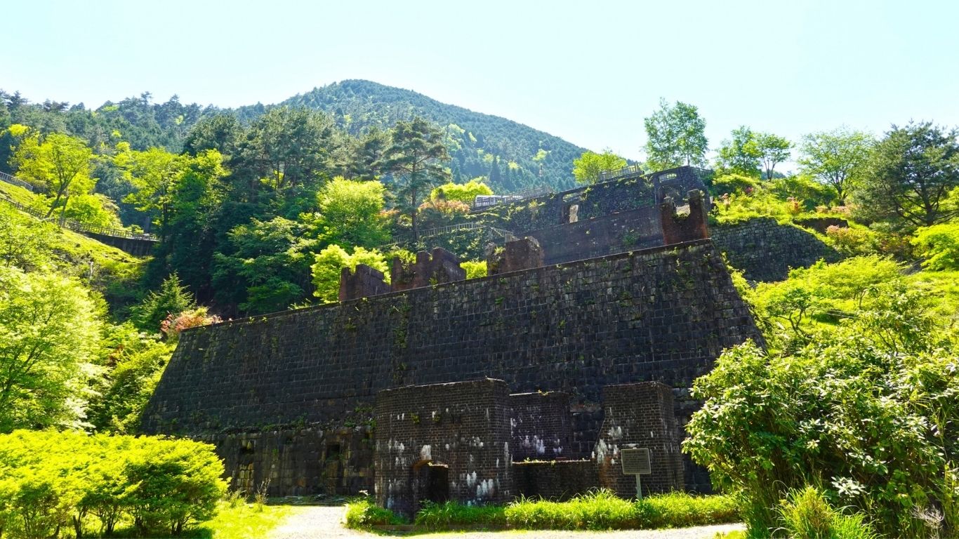別子銅山は1691年の開坑から1973年の閉山まで、日本の近代化を支えた世界屈指の銅山でした。標高約750mに位置する「東平」は、大正から昭和初期にかけて採鉱の拠点として栄え、当時は学校や劇場、社宅が並び、約5,000人もの人々が暮らす「山の上の都市」でした。現在は役目を終え、深い緑の中に重厚な石垣やレンガ造りの貯鉱庫跡が静かに眠っています。