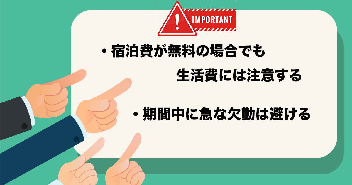 宿泊費が無料の場合でも、生活費には注意する