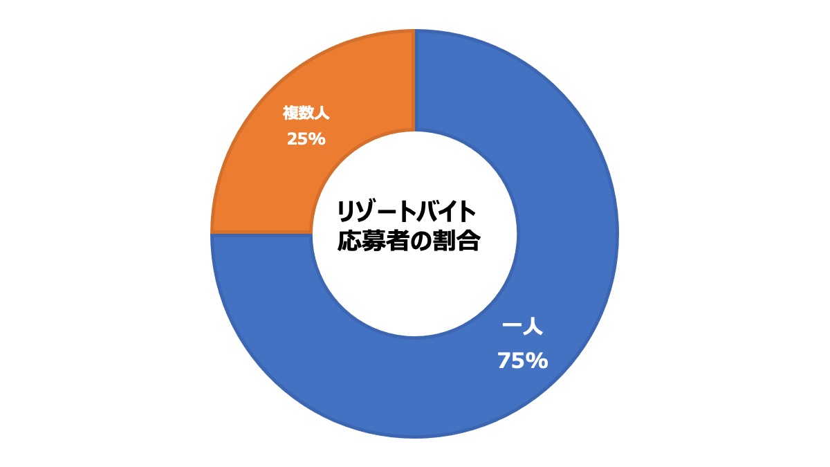 結論から申し上げますと、実に全体の75%の方が1人でリゾートバイトにご参加されています。
