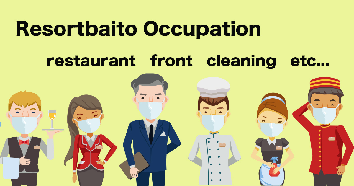 主な業務はホテルフロント、レストランサービス、イベントスタッフなど、観光業に関連する職種が一般的。