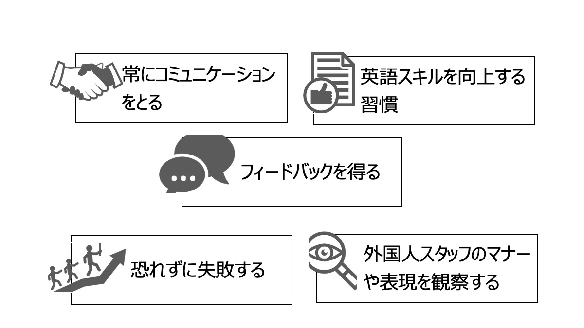 外国人観光客とのコミュニケーションを避けず、積極的に関わることが重要です。対話は語学学習の最も効果的な方法の一つです。日々の業務を通じて自然に英語を使う習慣を身につけましょう。