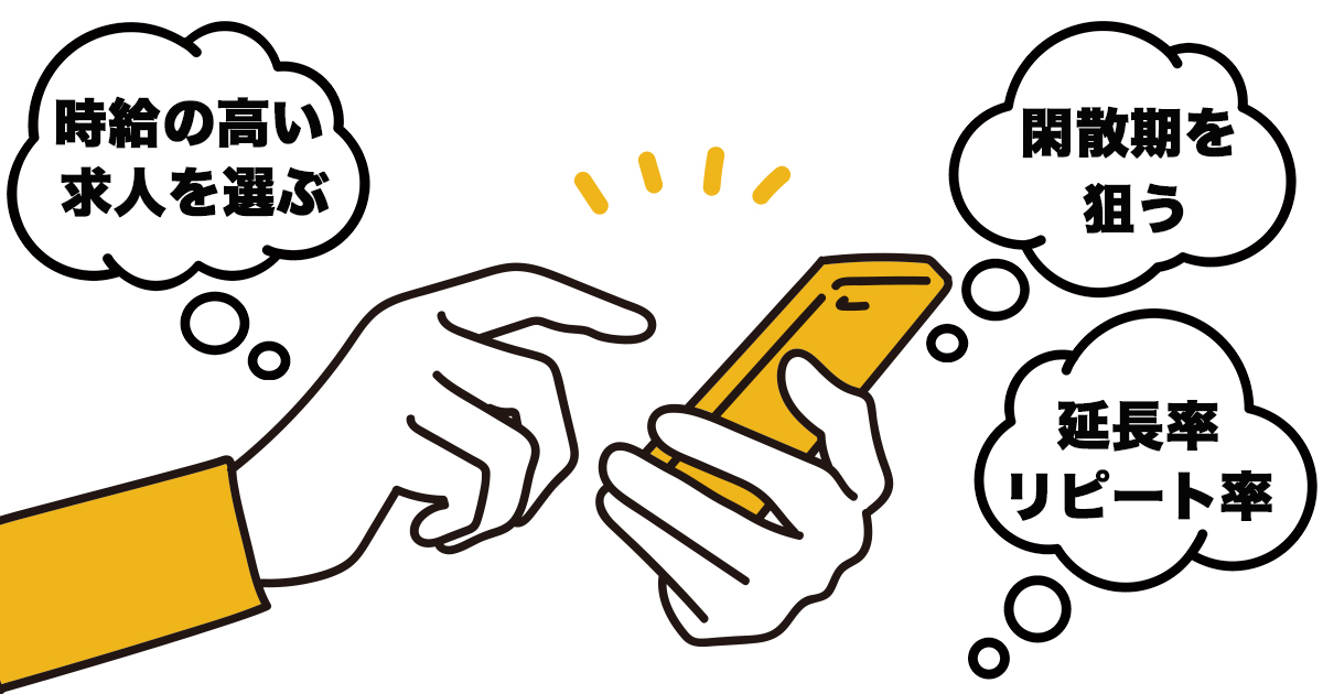 お仕事探しの際に「リピート率、延長率が高めのお仕事はありますか?」とスタッフさんに尋ねてみるのもいいかもしれません。