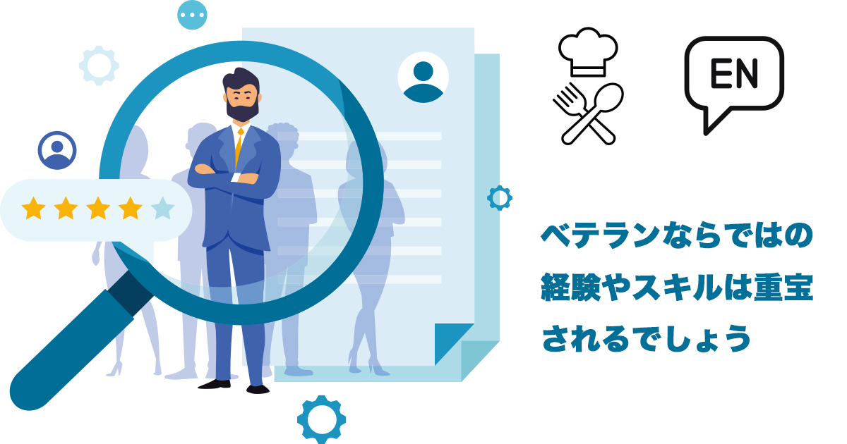 リゾートバイトの現場は若い世代が多いがゆえに経験や知識、資格を持っている人材は比較的少ない傾向にあります。しかし30代以上であれば何かしらの資格や経験をお持ちである方もいらっしゃるかと思います。特に重宝されるのは、募集職種での経験が既にある方。すでに仕事の流れを把握している為、雇用側からしても一から教える労力がカットされるため、喜ばれることが多いです。