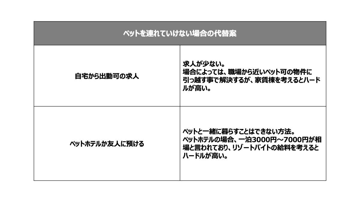 ペットを連れてのリゾートバイトが難しいことはお伝えしましたが、どうしてもペットと暮らしながらリゾートバイトをしたい場合はどうすればよいのでしょうか?