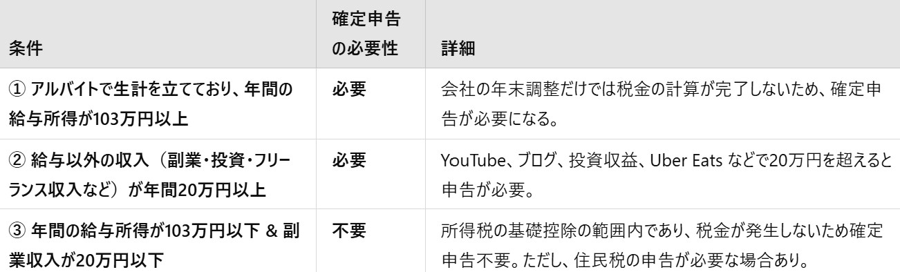 ✅ 掛け持ちバイトをしている場合、確定申告が必要になることが多い!