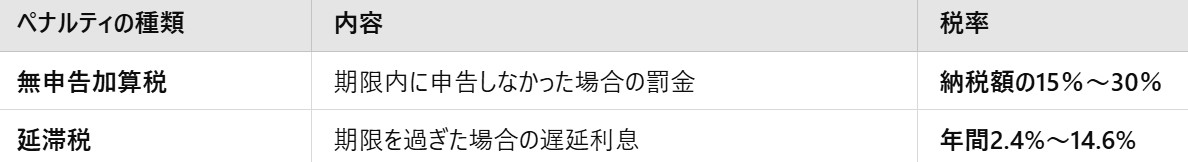 確定申告を忘れた場合、無申告加算税や延滞税などのペナルティが発生する可能性があります。